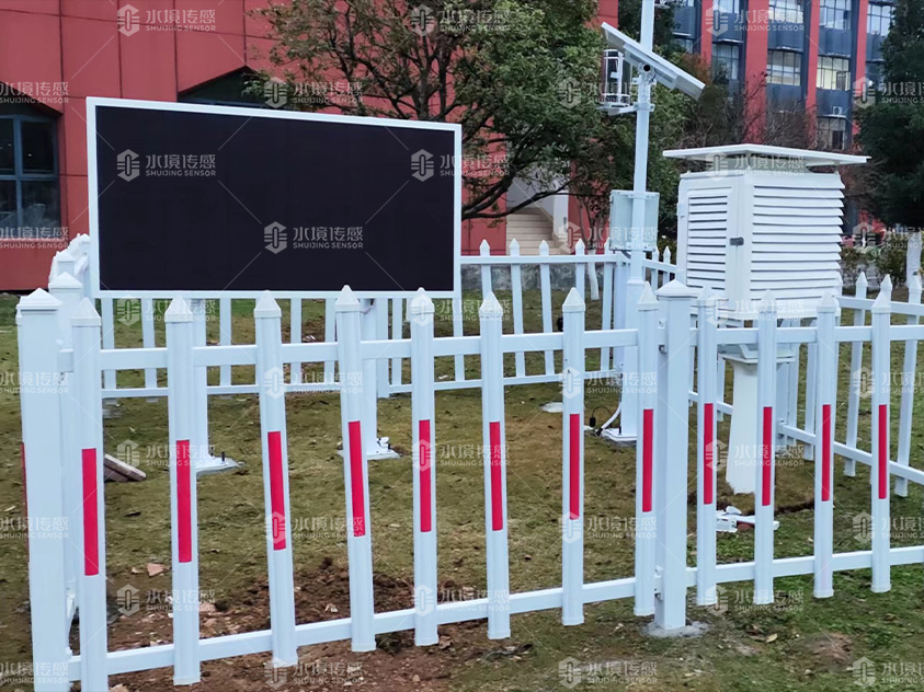 3.显示方式:2米*1米LED屏幕; 4.硬件组成:传感器、立杆支架、设备箱、LED屏幕、采集器、云平台、玻璃钢百叶箱(内含干湿球温度计) 、日照计、围栏 。